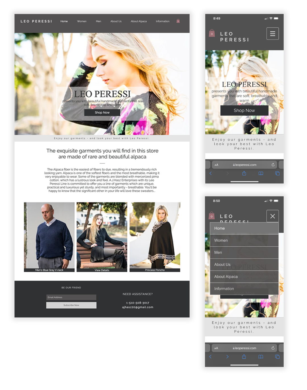 Leo Peressi invested in creating an intuitive and visually appealing e-commerce website. The website featured a user-friendly interface, showcasing the various alpaca sweaters available, along with detailed product descriptions, sizing charts, and high-resolution images. The site was optimized for seamless browsing and easy navigation, ensuring a positive user experience.