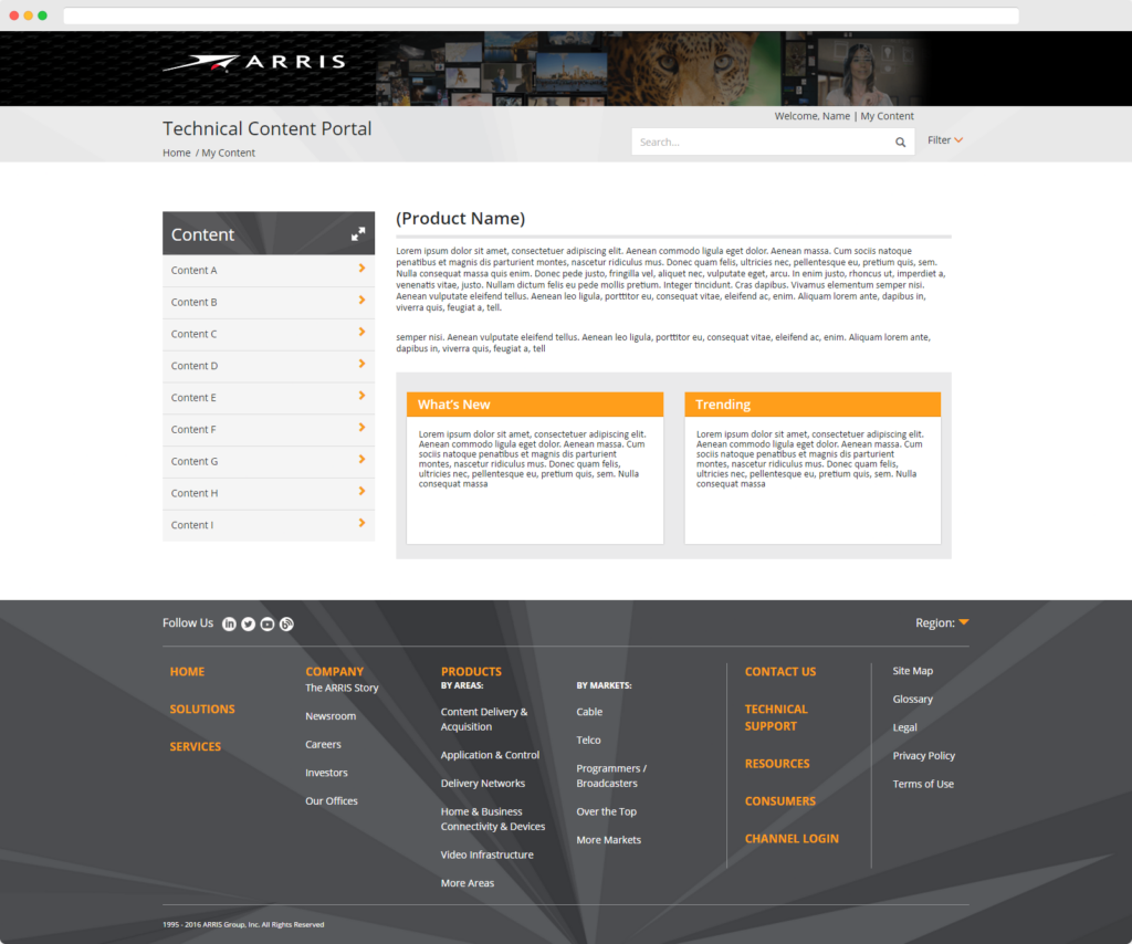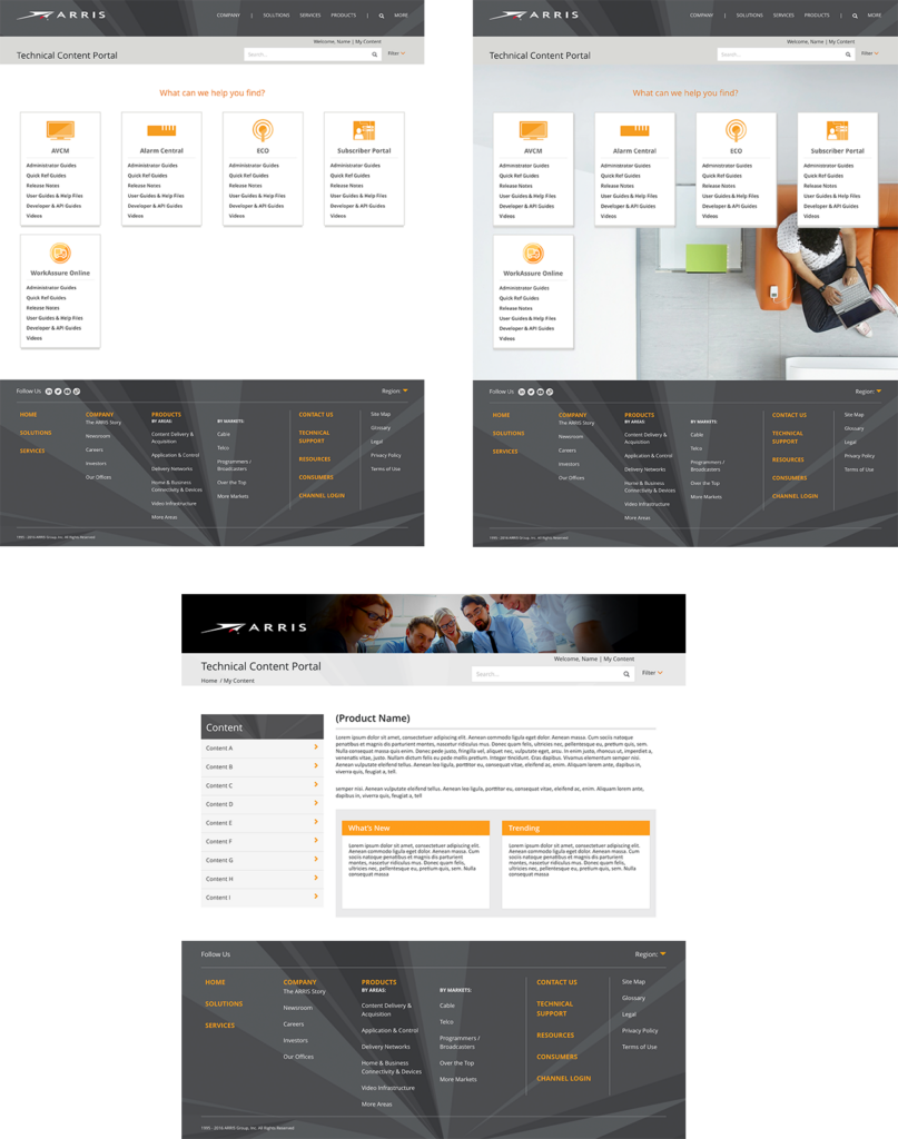 The goal of the project was to design a one-stop-shop for technical documentation for Arris products. Aside from technical documentation the platform also has a membership aspect and it allows the users to create an account and access training manuals, product updates, and many other useful tools.