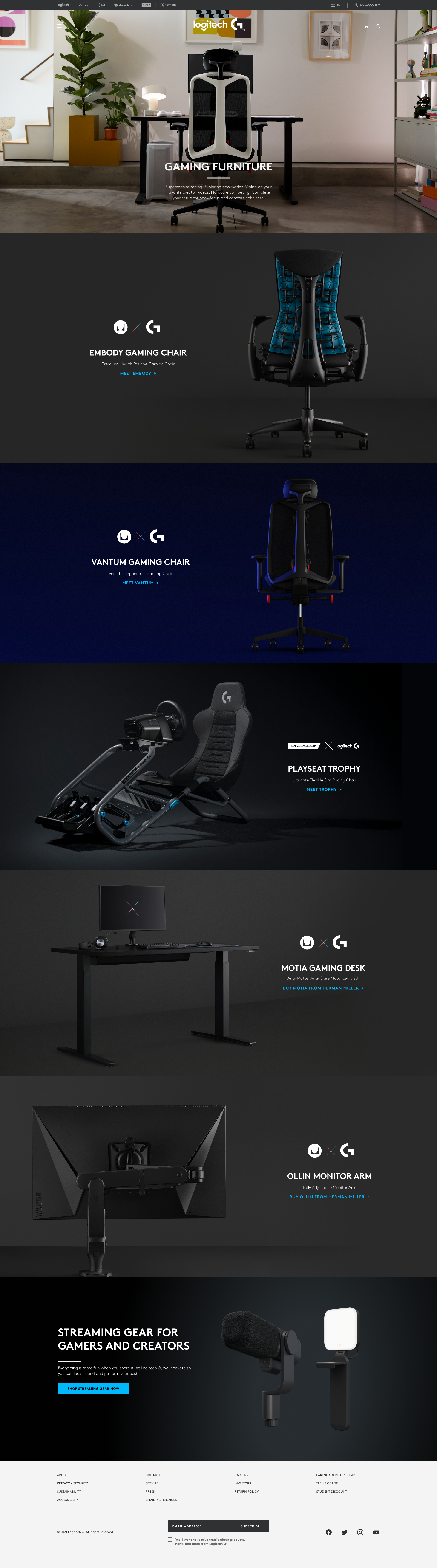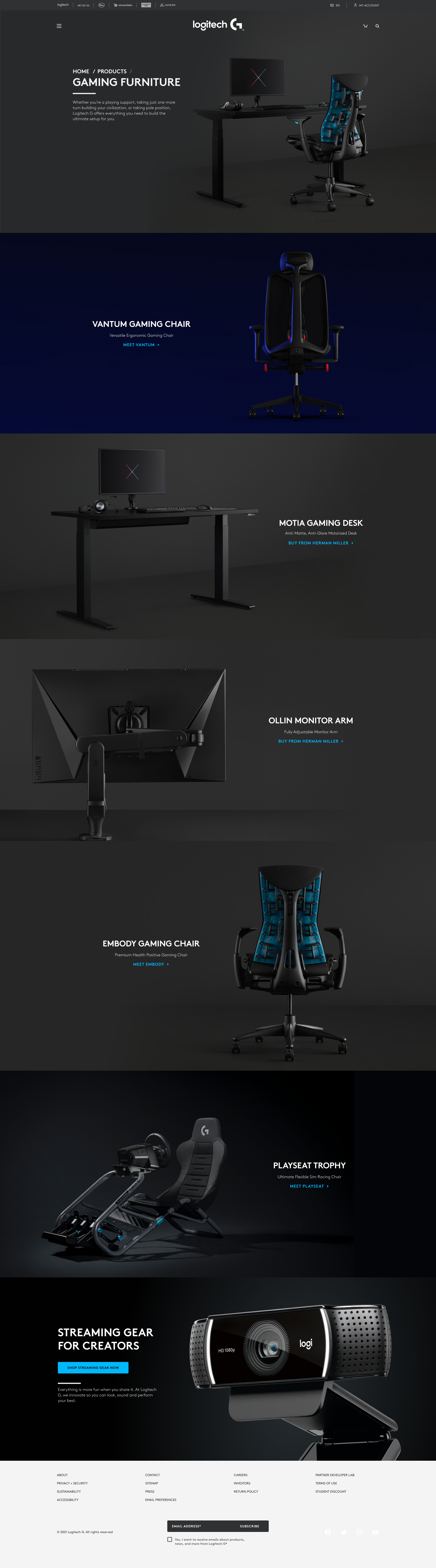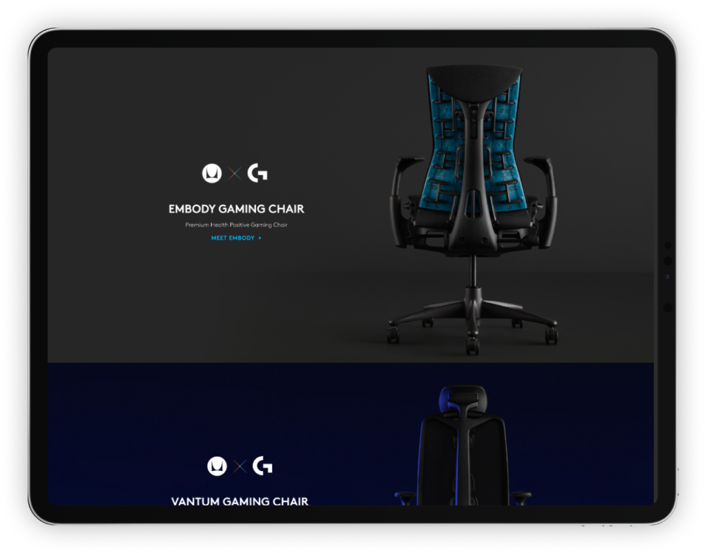 We created a hero section that showcases the key features of Logitech’s gaming furniture range. The hero section includes a video that highlights the design and functionality of the products, along with a CTA button to encourage users to explore the range further.