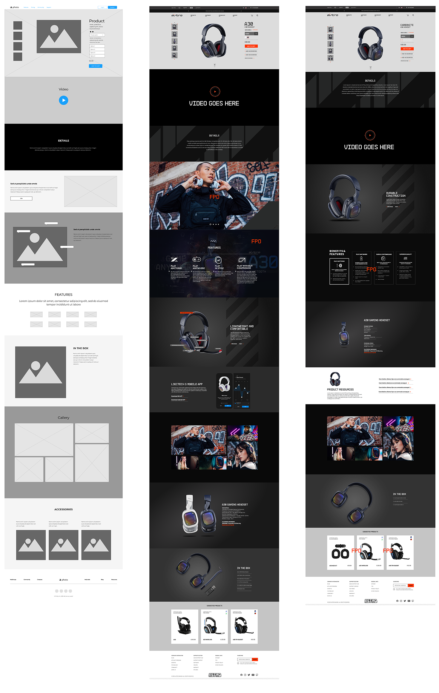 The final product page for the Astro Gaming A30 headset features a clean and creative design that highlights the product’s features and style. The page is divided into sections, with large product images at the top and sections for features, mobile app benefits, specifications, and cross sell section. A call-to-action button is prominently displayed, making it easy for users to make a purchase.